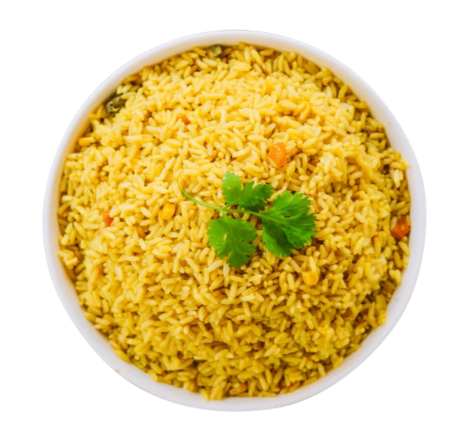 Saffron Rice is a vibrant, aromatic side made from long grain rice, gently cooked with saffron, turmeric, green peas, and diced carrots. The result is a golden-hued dish that adds color, warmth, and flavor to any Mediterranean plate.